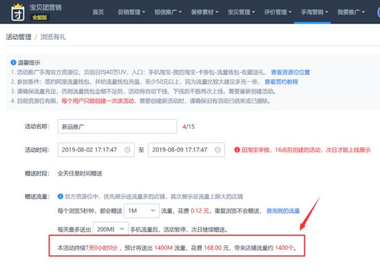 推广1周时间总花费168元带来1400个用户,如果你的产品还是比较有竞争力并且做好关联搭配,还能为宝贝带来更多浏览加购,这样的成本相信对于我们缺少老客资源也没有大笔推广资金的中小卖家还是挺友好的吧。有了浏览加购后,这些客户之后再进入淘宝首页大概率会看到我们的宝贝,等产品的曝光量足了,收藏加购和购买起来以后,你的手淘流量也会慢慢起来。