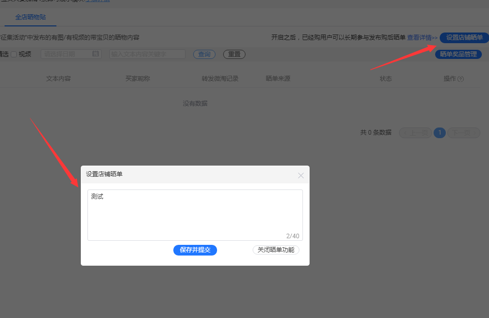 点击设置店铺晒单